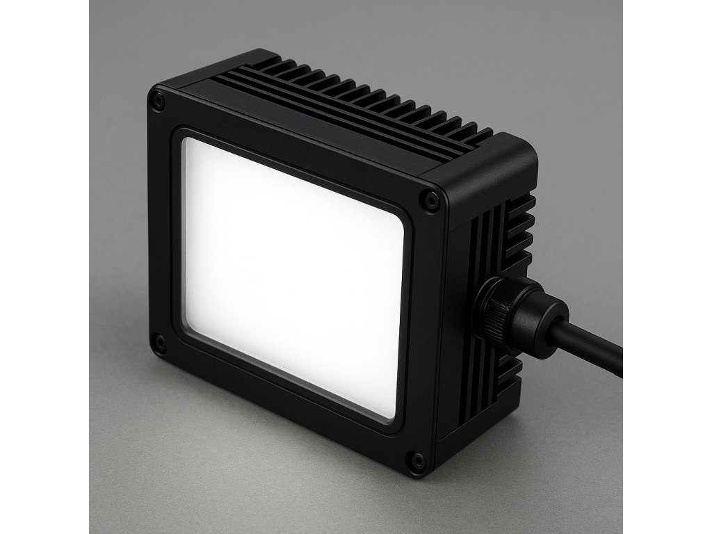 CLOUDCODE světlo s výkonem 1000W. Synchronizované na mikrosekundy s vysokorychlostní kamerou a robotem pro focení za pohybu robota pro minimalizaci taktu. Navrženo a vyrobeno v ČR.
